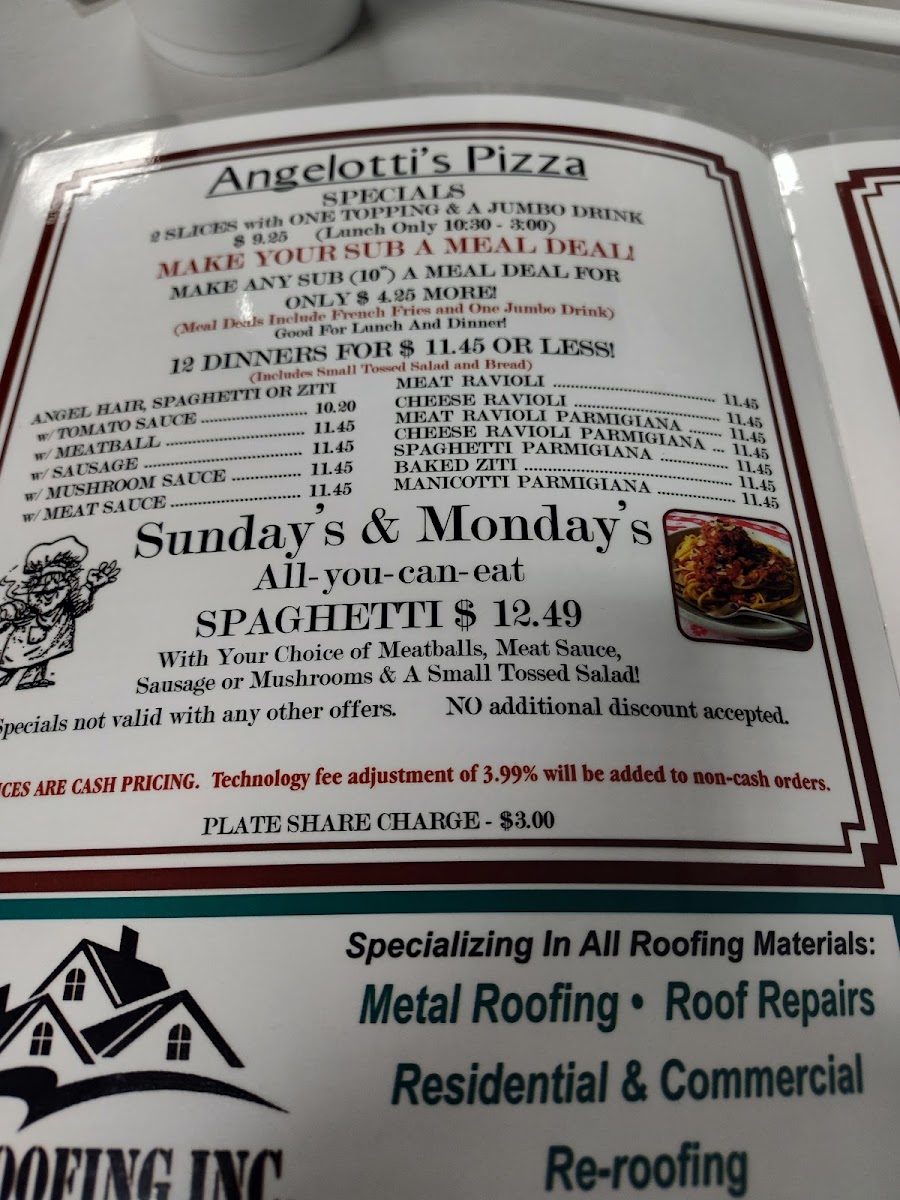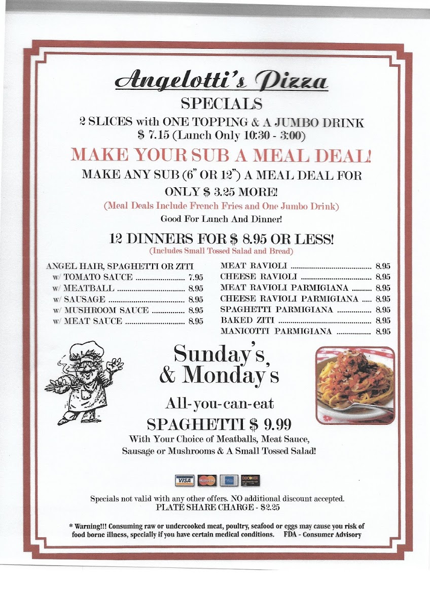 Welcome to Angelotti's Pizza, an Italian gem nestled at 138 Heights Ave, Inverness, FL. Known for its cozy atmosphere and friendly service, Angelotti's serves an impressive menu that goes beyond traditional pizza. Each dish reflects a dedication to quality and flavor, from their freshly tossed salads—like the hearty Chef's Salad—to indulgent baked ziti and rich ravioli specials, all priced competitively to offer great value.